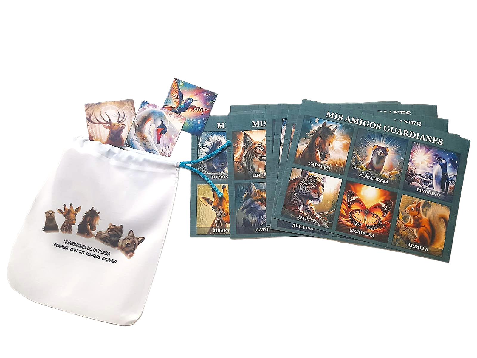 • En la lotería, los jugadores van tomando una tarjeta a su turno y cada animal guardián trae su energía esencial y su sabiduría,  traen desafíos para revelar su identidad.